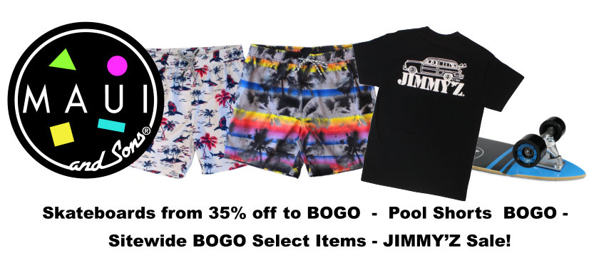 Want some new skate threads to rock with your new Maui and Sons skateboard ? Check out our friends over at Jimmy’Z!! Now through May 15th get 20% off new Jimmy’Z clothing available at jimmyzworld.com.